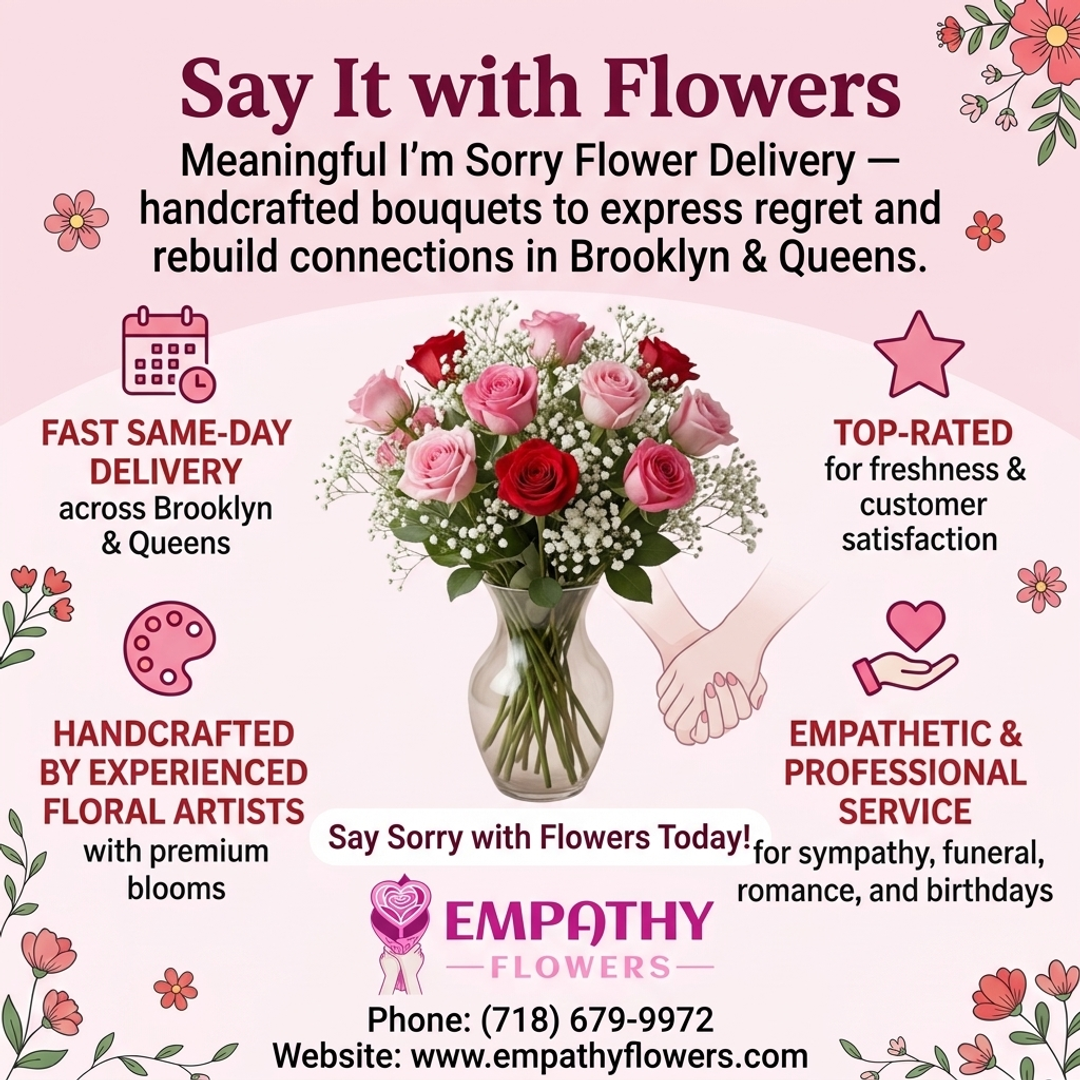 Static creative: screenshot-style graphic of ‘5-star’ theme + bouquet photo with Brooklyn & Queens service messaging and visible business phone (no competitor mention). Caption framework: - Heading: Fresh Flowers, Real Feelings - Subheading: Make someone’s day unforgettable with handcrafted bouquets, delivered same-day in Brooklyn & Queens! 💐 - Body: Highlight ‘top-rated local florist’ + handcrafted by real floral artists + reliable same-day delivery; invite customers to share their experience. - Required phrase: Express your emotions with flowers! - CTA: Order Now & Spread Joy Today! Engagement prompt: “Have we delivered for you? Share the occasion—romance, birthday, or sympathy—so we can thank you.”
