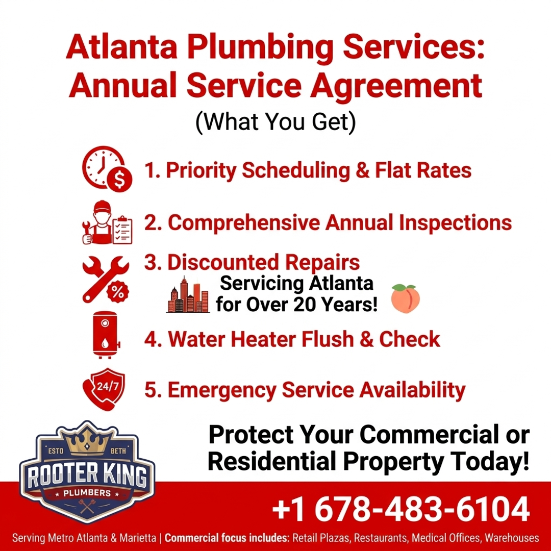Value-focused static post for Atlanta, GA homeowners & small businesses: what’s included in Rooter King’s Annual Service Agreement as a proactive plumbing ma...